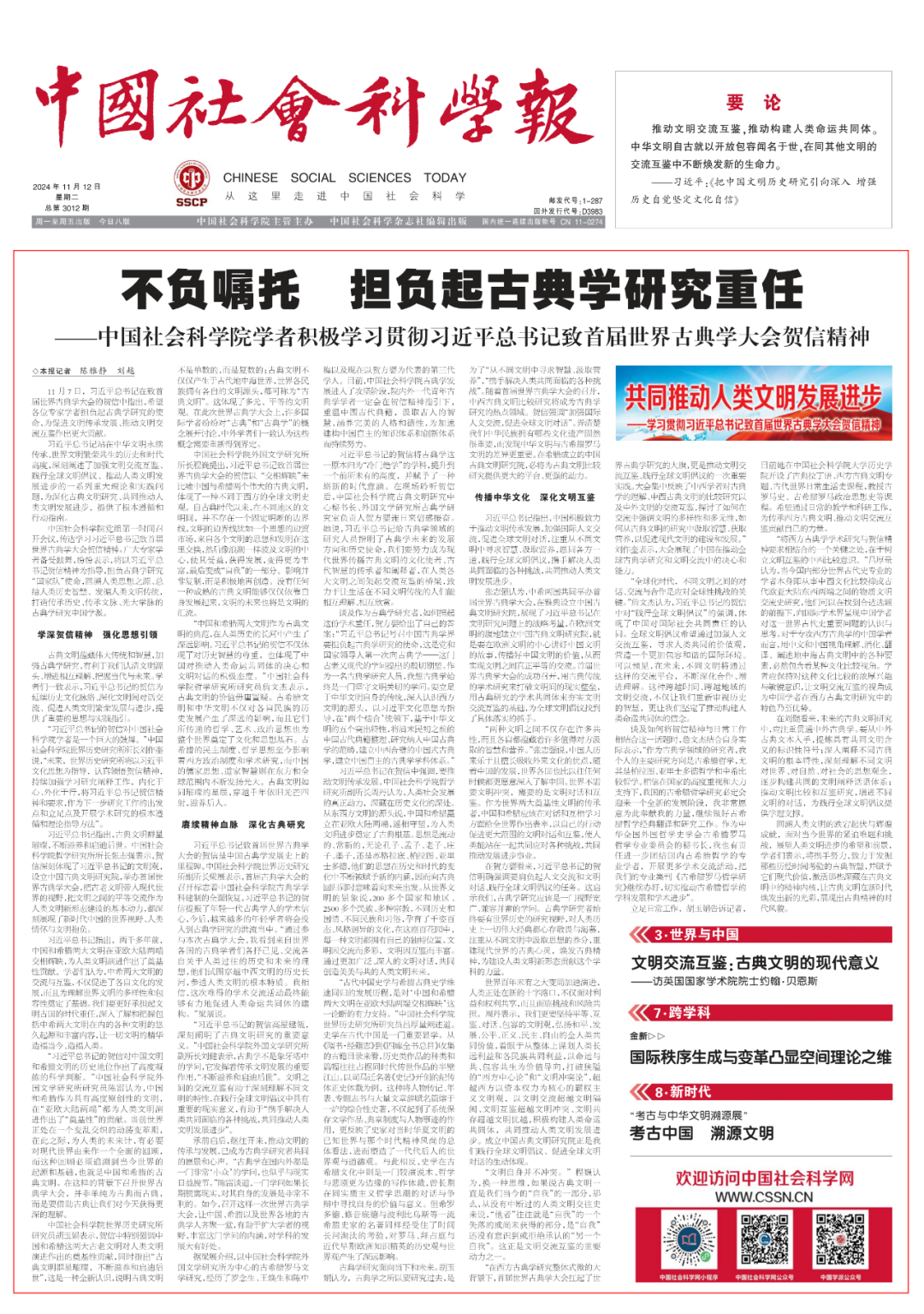 不負囑托 擔負起古典學研究重任——中國社會科學院學者積極學習貫徹習近平總書記致首屆世界古典學大會賀信精神