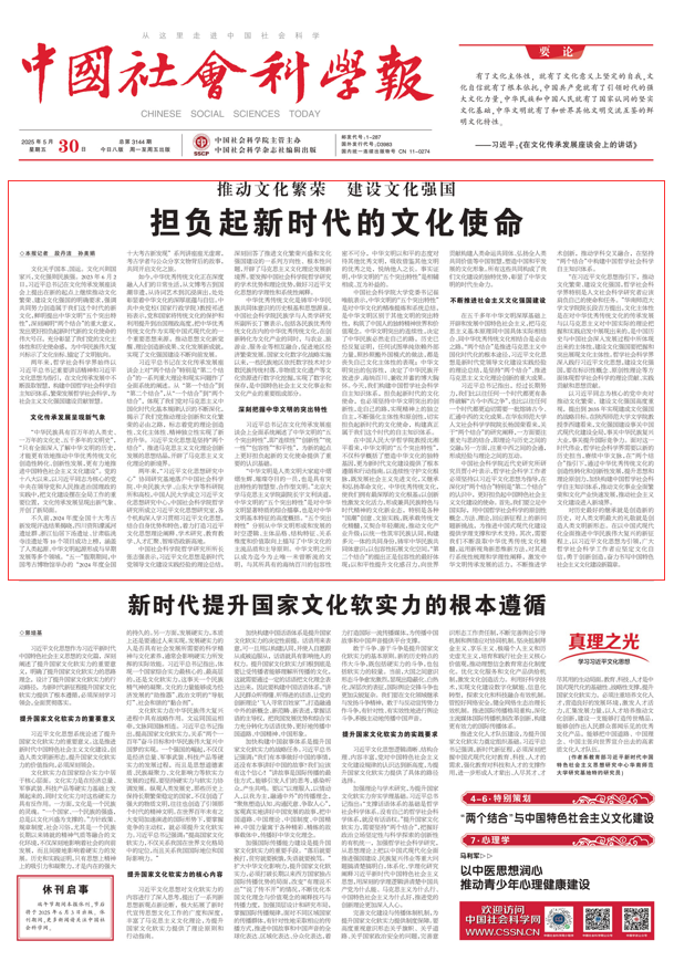 兩年來(lái),哲學(xué)社會(huì)科學(xué)界始終以習(xí)近平總書(shū)記重要講話(huà)精神和習(xí)近平文化思想為指引,在文化傳承發(fā)展中不斷汲取智慧,構(gòu)建中國(guó)哲學(xué)社會(huì)科學(xué)自主知識(shí)體系,繁榮發(fā)展哲學(xué)社會(huì)科學(xué),為社會(huì)主義文化強(qiáng)國(guó)建設(shè)貢獻(xiàn)智慧。
